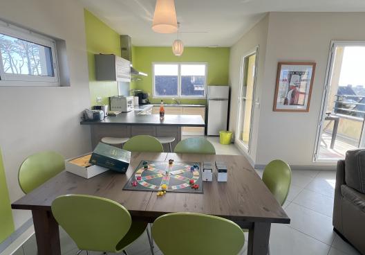 - Séjour avec une table et six chaises