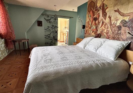 - La Suite parentale : une deuxième chambre spacieuse avec un lit King Size (180 cm) et une jolie salle d'eau privative. Celle-ci arbore un design Art Déco original avec douche à l'italienne et deux vasques sur pied.