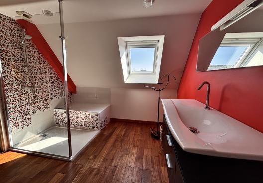 • Sanitaires : Une salle d'eau moderne avec douche à l'italienne commune aux deux chambres et un WC séparé.