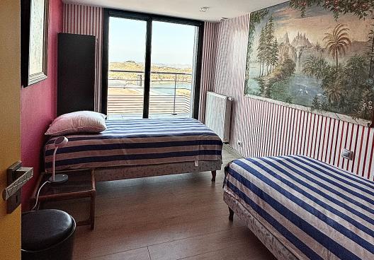 - une première chambre indépendante avec lit double (160 cm) disposant de sa propre salle de bain (baignoire) et d'un WC. Idéale pour ceux qui veulent un peu d'indépendance avec une vue apaisante sur la mer.