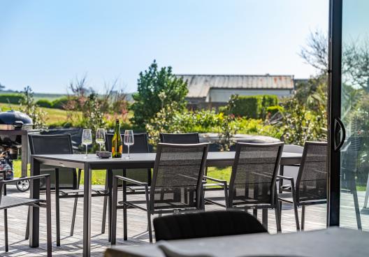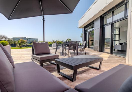 L'extérieur est une véritable extension de la maison : une très grande terrasse équipée d’un salon de